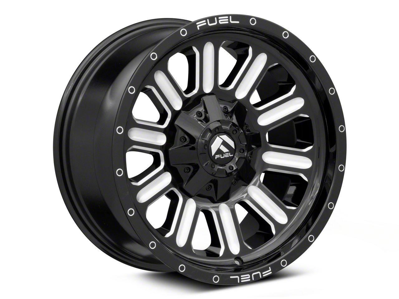 The 18x9 Fuel Wheels Hardline Gloss Black Milled 6-Lug Wheel is given a gloss black finish to keep the wheel looking as sharp as its design. This wheel's milled steel accents are really where it shines through, and quite literally. It makes the split section of the spokes pop along the faux beadlock.