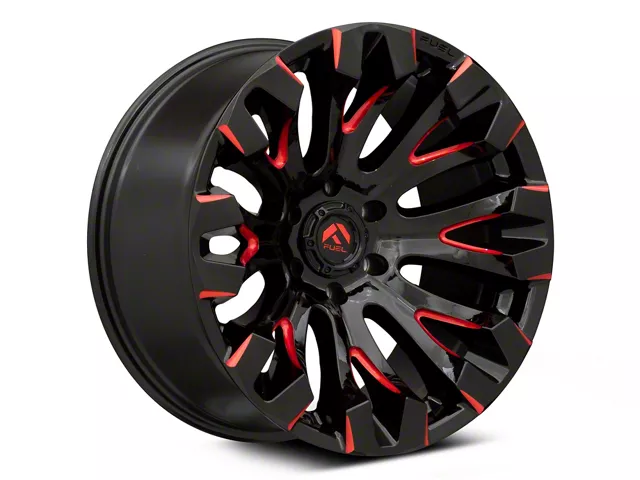 Fuel Wheels Quake Gloss Black Milled with Red Accents 6-Lug Wheel; 20x10; -18mm Offset: Immerse your vehicle in style and elegance with this wheel's captivating matte black finish. The unique 10-hole design of this Mammoth wheel sets your vehicle apart, making a statement on the road. Whether cruising the city streets or heading out for a weekend escape, this wheel complements a wide range of vehicle styles.