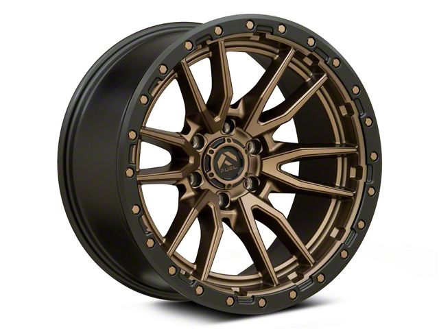 Fuel Wheels Rebel Matte Bronze 6-Lug Wheel; 18x9; 1mm Offset: Immerse your vehicle in style and elegance with this wheel's captivating matte black finish. The unique 10-hole design of this Mammoth wheel sets your vehicle apart, making a statement on the road. Whether cruising the city streets or heading out for a weekend escape, this wheel complements a wide range of vehicle styles.