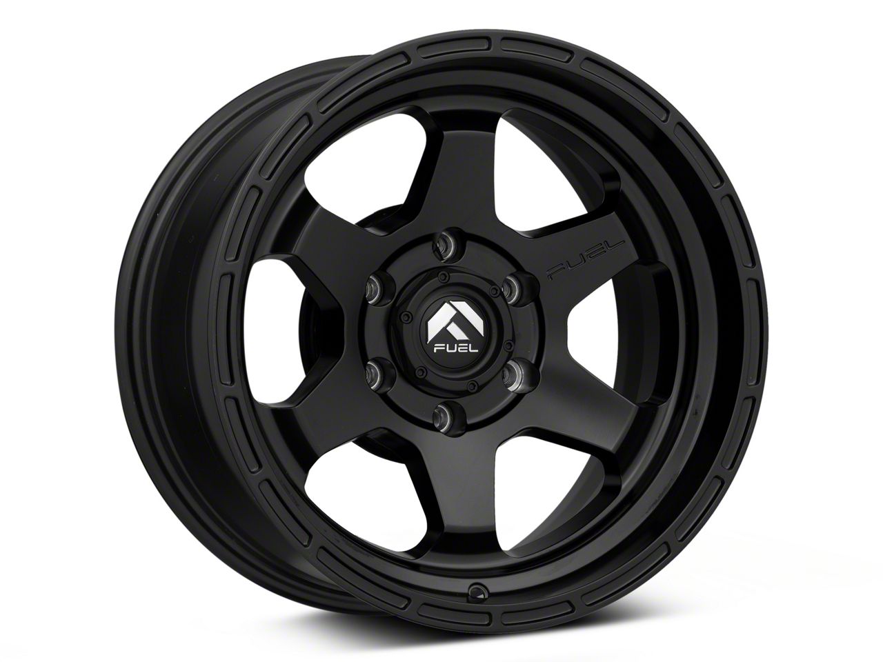 Fuel Wheels Shok Matte Black 6-Lug Wheel; 18x9; 1mm Offset exudes sophistication with its finish, offering a sleek and modern appeal to any vehicle it adorns. The design is meticulously crafted to enhance the aesthetic of your vehicle, giving it a distinctive and upscale look. Perfect for those seeking to elevate their vehicle's style, this wheel blends seamlessly with both contemporary and classic vehicle designs, making it a versatile choice for a wide range of vehicles. Its robust construction ensures durability, making it a reliable choice for drivers who value both style and quality.