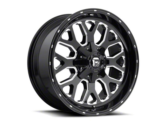 This 18x9 Fuel Wheels Titan Gloss Black Milled 6-Lug Wheel is completed in a high-quality gloss black finish with steel milled accents that will create a striking appearance. There's a durable clear coat that protects against driving hazards.