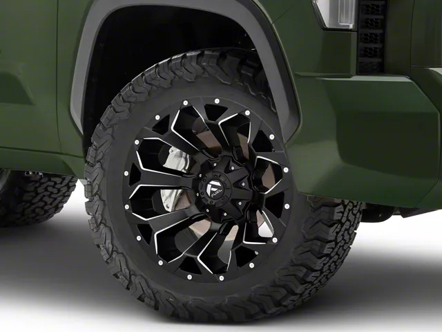 Application. This Fuel Wheels Assault Satin Black Milled 6-Lug Wheel; 20x9; 1mm Offset with a backspace of 5.04 Inch, 128.1mm and bolt pattern of 6 x 139.7mm (6 x 5.5-Inch) ensures impeccable alignment and driving stability. It's designed to fit the 22-23 Tundra models, sold individually.