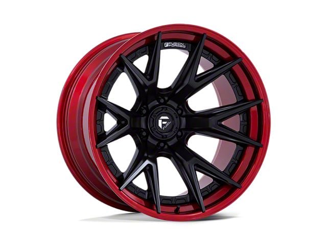 Fuel Wheels Catalyst Matte Black with Candy Red Lip 6-Lug Wheel; 20x9; 20mm Offset has a unique aesthetic appeal, combining a rugged finish with a sleek design. This striking design enhances the visual impact of any vehicle, making it a standout on the road. Perfect for those seeking a balance of toughness and style.