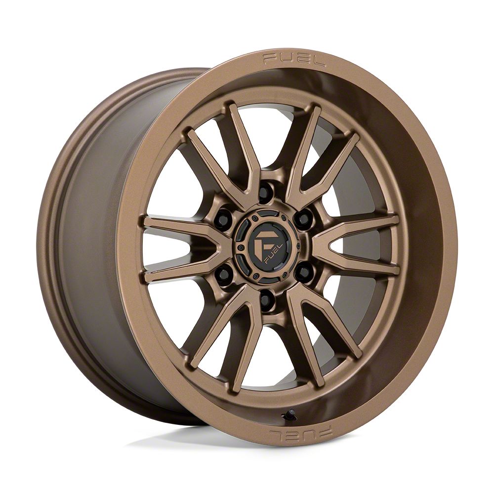 The 20x9 Fuel Wheels Clash Bronze 6-Lug Wheel is completed in a high-quality bronze finish, which looks great. Thanks to a durable clear coat, the finish also protects against the rigors of driving.