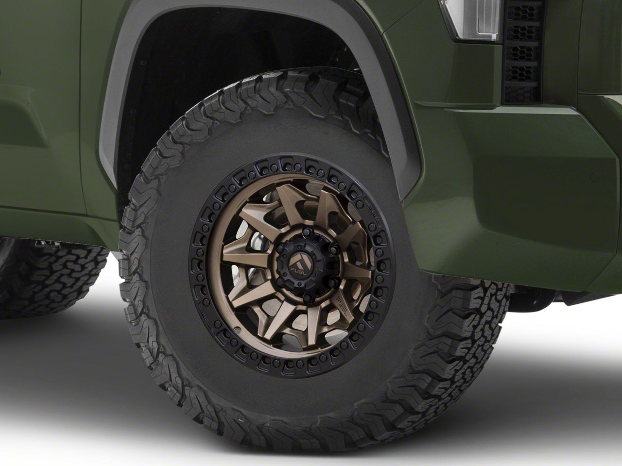 Application. This Fuel Wheels Covert Matte Bronze with Black Bead Ring 6-Lug Wheel; 17x9; 1mm Offset with a backspace of 5.2004 Inch, 128.1mm and bolt pattern of 6 x 139.7mm (6 x 5.5-Inch) ensures impeccable alignment and driving stability. It's designed to fit the 2022-2026 Tundra models, sold individually.Fuel Wheels D69617908450