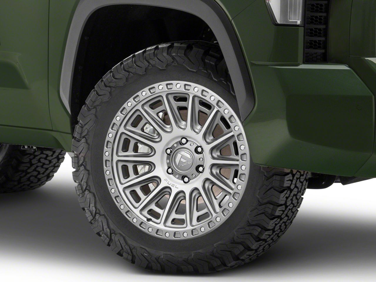 Application. This Fuel Wheels Cycle Platinum 6-Lug Wheel; 20x9; 1mm Offset, with a backspace of 5.039 Inch, 128mm and bolt pattern of 6 x 139.7mm (6 x 5.5-Inch), ensures proper alignment and stability. It's designed to fit the 2022-2026 Tundra models, enhancing both the look and the overall driving experience. Sold individually.
