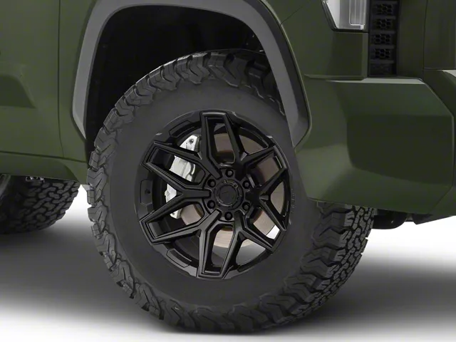 Application. This Fuel Wheels Flux Blackout 6-Lug Wheel; 18x9; 30mm Offset with a backspace of 6.181 Inch, 157mm and bolt pattern of 6 x 139.7mm (6 x 5.5-Inch) ensures optimal alignment, unparalleled driving stability, and an impeccable fit with your vehicle. It is designed to fit the 2022-2026 Tundra models. Sold individually.