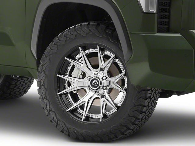 Application. This Fuel Wheels Fusion Forged Catalyst Chrome with Gloss Black Lip 6-Lug Wheel; 20x9; 1mm Offset, with a backspacing of 5.039 Inch, 128mm and a bolt pattern of 6 x 139.7mm (6 x 5.5-Inch), enhances your vehicle's alignment and driving stability. It is designed to fit 2022-2025 Tundra models, ensuring a perfect match for these specific vehicles. The wheel's specifications are tailored to provide optimal fit and performance, offering a seamless integration with your vehicle's design. Sold individually.