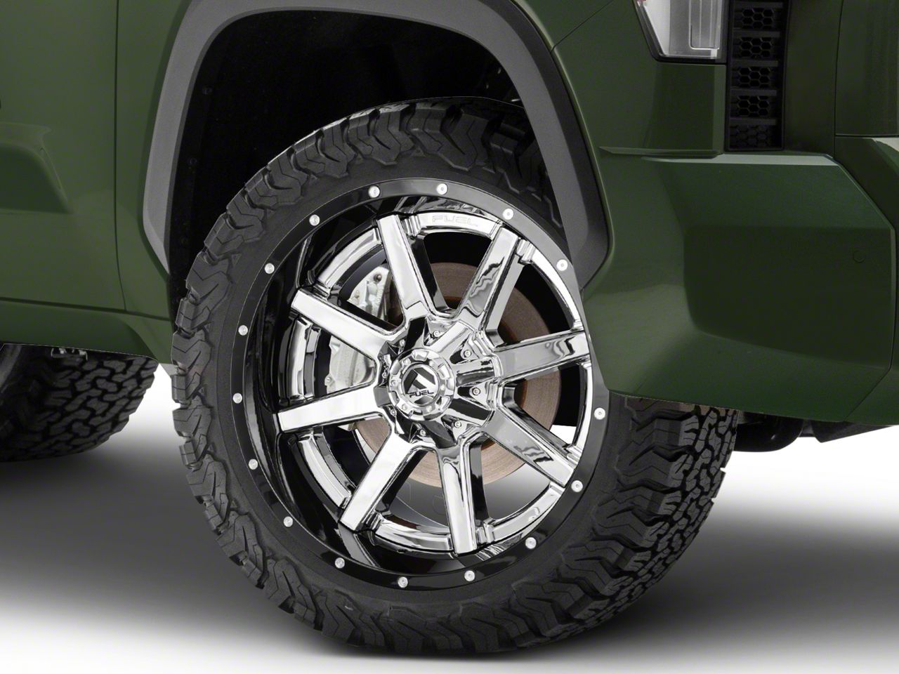 Application. This Fuel Wheels Maverick Chrome with Gloss Black Lip 6-Lug Wheel; 22x10; -13mm Offset with a backspace of 4.989 Inch, 126.8mm and bolt pattern of 6 x 139.7mm (6 x 5.5-Inch) is meticulously engineered to enhance alignment and driving stability. It is designed to fit 2022-2026 Tundra models. Sold individually.
