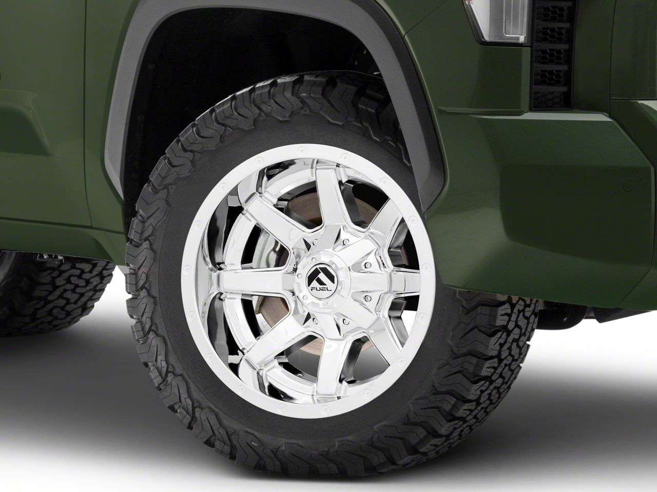Application This Fuel Wheels Maverick Chrome 6-Lug Wheel; 20x9; 1mm Offset, with a backspace of 5.04 Inch, 128.1mm and a bolt pattern of 6 x 139.7mm (6 x 5.5-Inch), contributes to optimal wheel alignment and driving stability. Designed to fit the 2022-2026 Tundra models, it offers a seamless integration with your vehicle. Sold individually, it's a top choice for a tailored vehicle look.