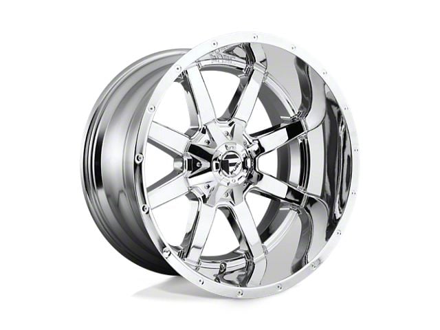 Fuel Wheels Maverick Chrome 5-Lug Wheel; 20x10; -18mm Offset The Fuel Wheels Maverick Chrome 5-Lug Wheel combines a sleek, sophisticated design with premium construction that enhances the visual appeal and complements a wide range of vehicle styles. This wheel is perfect for those seeking to make a bold statement while maintaining elegance and robustness.