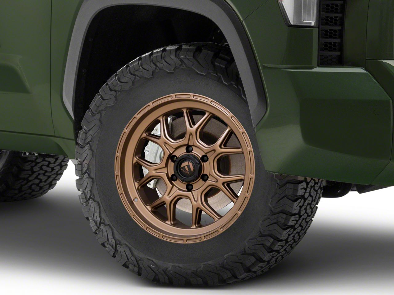 Application. The Fuel Wheels Tech Matte Bronze 6-Lug Wheel; 18x9; 1mm Offset, with a backspace of 5.04 Inch, 128.1mm and a bolt pattern of 6 x 139.7mm (6 x 5.5-Inch), is designed to enhance alignment and stability for a smooth driving experience. Specifically tailored to fit 2022-2026 Tundra models, it ensures a perfect blend of style and functionality. Sold individually, this wheel is an ideal upgrade for your vehicle.