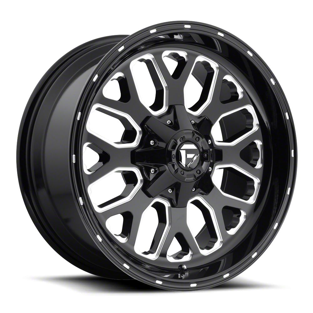 The 18x9 Fuel Wheels Titan Gloss Black Milled 6-Lug Wheel is given a gloss black finish to keep your wheel looking sharp, but the steel milled accents are where it really shines through, literally. It makes the split section of the spokes pop and adds accents along the faux beadlock.