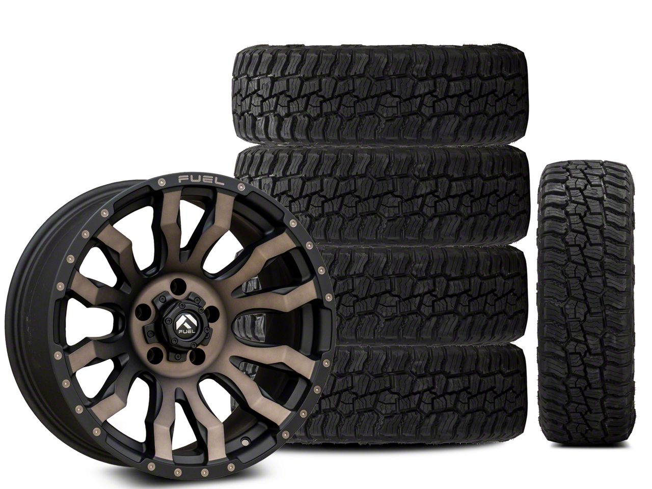 Mounted and Balanced Wheel and Tire Kit. This wheel and tire combo kit features (5) 18x9 Fuel Wheels Blitz Matte Black Double Dark Tint Wheels and (5) Mickey Thompson Baja Boss A/T 33" - 275/70R18 tires that have been put together into an easy to buy kit that arrives to your door already mounted and balanced ready to be installed on your vehicle.