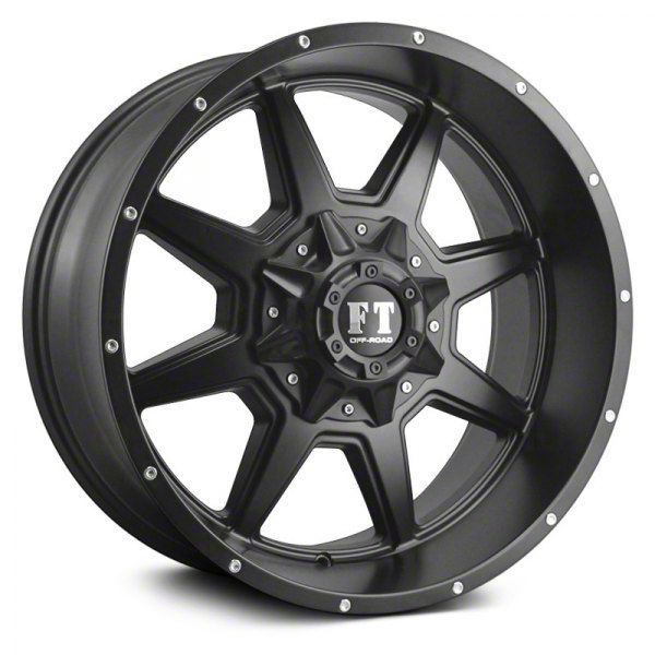 The 18x9 Full Throttle Off Road FT2 Satin Black 6-Lug Wheel is given a satin black finish to keep your wheel looking as sharp as its design.