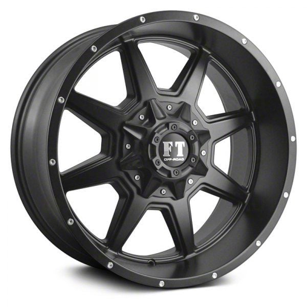 Full Throttle Off Road FT2 Satin Black 6-Lug Wheel; 18x9; 0mm Offset. The Full Throttle Off Road FT2 Satin Black 6-Lug Wheel; 18x9; 0mm Offset features a sleek and modern design that enhances the overall aesthetic of any vehicle. Its brushed gunmetal finish adds a touch of sophistication and complements various vehicle styles. This wheel's premium construction ensures durability and a robust appearance.