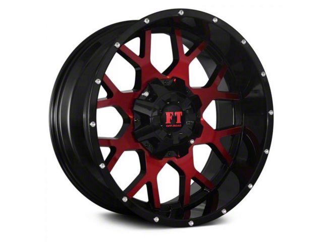Full Throttle Off Road FT0151 Gloss Black with Red Face 6-Lug Wheel; 20x10; -24mm Offset exudes sophistication with its finish, offering a sleek and modern appeal to any vehicle it adorns. The design is meticulously crafted to enhance the aesthetic of your vehicle, giving it a distinctive and upscale look. Perfect for those seeking to elevate their vehicle's style, this wheel blends seamlessly with both contemporary and classic vehicle designs, making it a versatile choice for a wide range of vehicles. Its robust construction ensures durability, making it a reliable choice for drivers who value both style and quality.