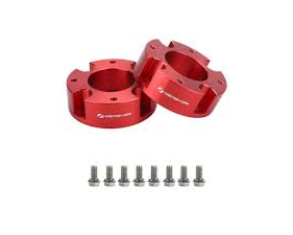Construction and Appearance. Built from precision CNC-machined 6061 hardened aluminum alloy, this leveling kit is robust and durable. It features an eye-catching anodized cherry red finish that not only protects but also enhances the visual appeal of your Tundra's undercarriage.