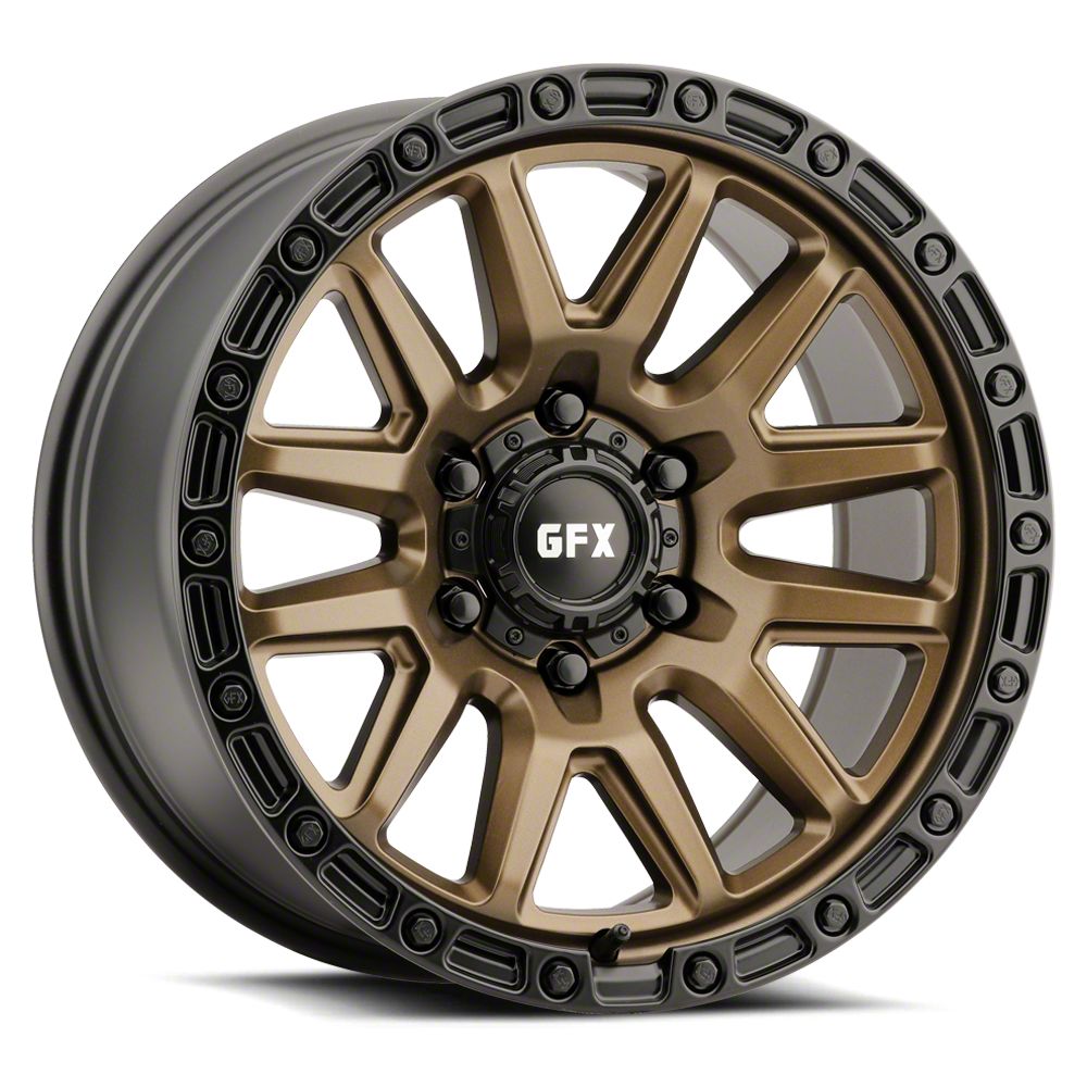G-FX T26 Bronze with Black Lip and Bolts 6-Lug Wheel; 17x9; 0mm Offset. The G-FX T26 Bronze with Black Lip and Bolts 6-Lug Wheel; 17x9; 0mm Offset features a sleek and modern design that enhances the overall aesthetic of any vehicle. Its brushed gunmetal finish adds a touch of sophistication and complements various vehicle styles. This wheel's premium construction ensures durability and a robust appearance.