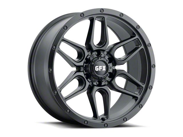 G-FX TR-18 Matte Black 6-Lug Wheel; 17x8.5; -6mm Offset offers a striking balance between style and durability. The design speaks to the brand's commitment to quality, enhancing the vehicle's appearance with its distinct look. This wheel, with its unique aesthetics, is ideal for drivers who appreciate a blend of modern design and robust functionality.