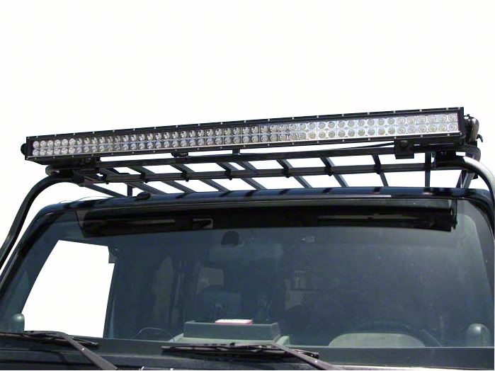 Let There Be Light Bar. Sure, you can add a lot of smaller lights and light bars to the front of your 1966-2024 Jeep CJ and Wrangler YJ, TJ or JK so you can off-road at night, but that can lead to a lot of wires and a lot of used space. Taking advantage of the space you have on the front of your Garvin roof rack by installing the Garvin 50 in. Light Bar Mount Bracket for 4 in. High Expedition Roof Rack gives you the option of adding a 50 in. light bar to the front of your Jeep.