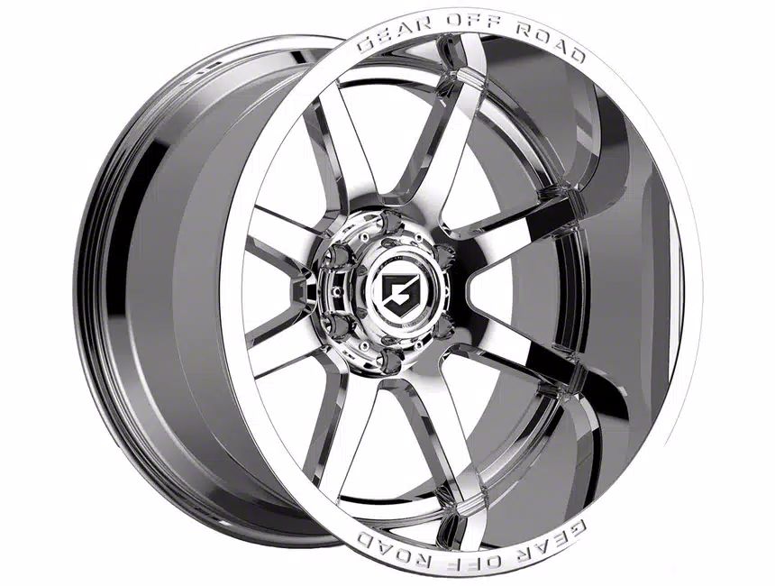 Description. A modern redesign of the 726 Big Block, we have pivoted this styling to give more dimension to your truck/SUV. We’ve refined the classic 8 spoke design into a clean 8 spoke design with milled accents. The Pivot also includes the classic deep lip dual debossed with the “Gear Off Road” name. We’ve rounded out this wheel with our signature Gear Off Road logo on a bolt-on center cap. Lastly, the Pivot is available in both gloss black with milled accents and chrome.