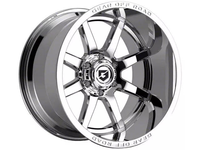 Gear Off-Road Pivot Chrome 6-Lug Wheel; 20x9; 18mm Offset The Gear Off-Road Pivot Chrome 6-Lug Wheel showcases a blend of race-inspired aesthetics, ideal for those seeking a premium and robust appearance. Its design complements various vehicle styles, adding sophistication.