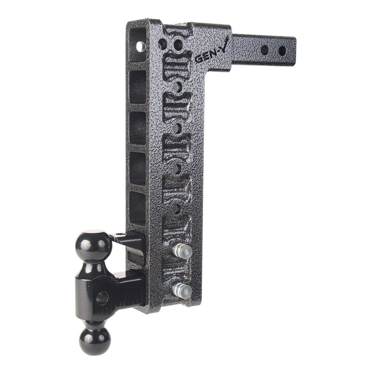 Adjustable and Secure Towing. Gen-Y Hitch offers the Mega-Duty 2-Inch Receiver Hitch 10K Adjustable Ball Mount with Pintle Lock 15-Inch Drop Hitch to maximize your vehicle’s utility. The dual ball mount design comes in an easy-to-operate adjustable design that lets you tow trailers of different heights with the same vehicle. The stacked receivers are also perfect for attaching hitch-mounted bike racks or cargo carriers for versatile functionality.
