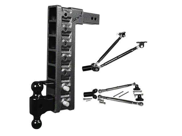 Safe and Stable Towing. Travel with peace of mind knowing that your towing setup is safe by using the Gen-Y Hitch Mega-Duty 2.50-Inch Receiver Hitch 21K Adjustable Ball Mount with Stabilizer Bars 18-Inch Drop Hitch. The high tow rating and versatile mounting design of this Mega-Duty Hitch provide options of multiple-application towing with different trailer heights. Additionally, it comes with durable drop stabilizer bars to prevent trailer sway for improved handling and stable towing.