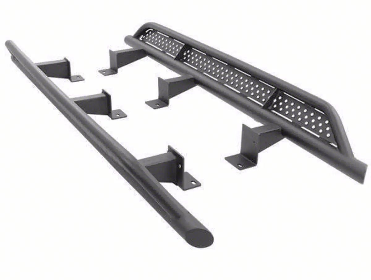 Construction and Appearance. Manufactured from a solid one-piece welded structure, these sliders are built for strength and long-lasting performance. A zinc-coated primer serves as the first layer of defense against corrosion, while the matte black powder-coat finish enhances resistance to the elements. The sleek finish also gives your 4Runner an aggressive and purposeful appearance.