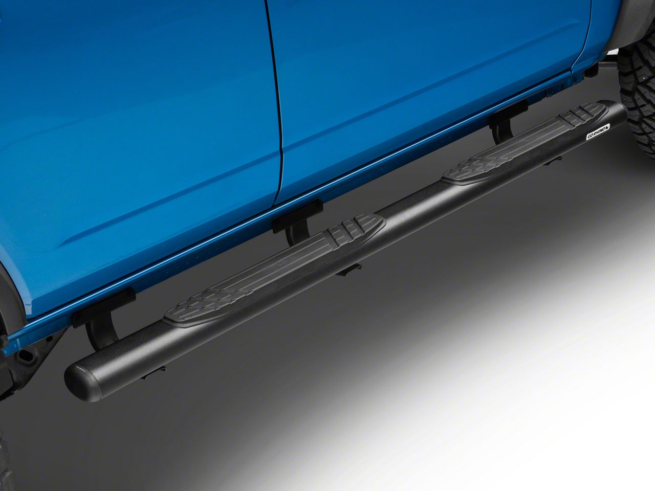 Application. These 4-Inch OE Xtreme Side Step Bars; Textured Black are designed to fit 2021-2026 Ford Bronco 4-Door models. Driver and passenger side included.