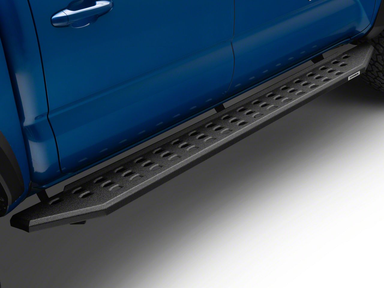 Step On Up. These RB20 Running Boards are 7.5-inches wide at the front and taper to 6.5-inches at the rear to provide a stable step for easy entry in and out of your 2005-2023 Toyota Tacoma Double Cab. The cab length, punched hole tread design provides excellent footing in all weather conditions. As an added bonus, these Cab Length Running Boards will also help to protect your lower rocker panels from damage caused by trail obstacles and road debris.