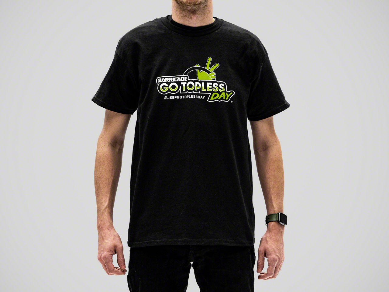 Celebrate Go Topless Day 2024. Celebrate the return of nice spring weather by having your Jeep go topless on Saturday May 21st, 2024. This great-looking black T-Shirt sports the iconic Jeep Wave logo in green and white across the front. Made from soft, breathable, 100% preshrunk cotton, this short sleeve Go Topless Day Themed Graphic T-Shirt is machine washable and can be tumble dried on low for easy care.