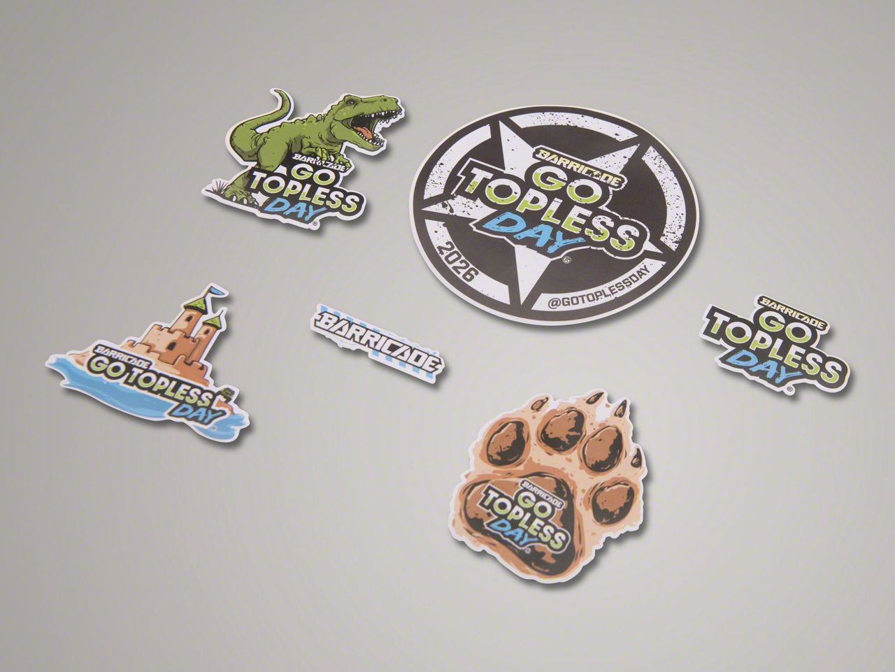 • Includes 2026 Event Sticker and Other Barricade/Go Topless Day Branded Stickers