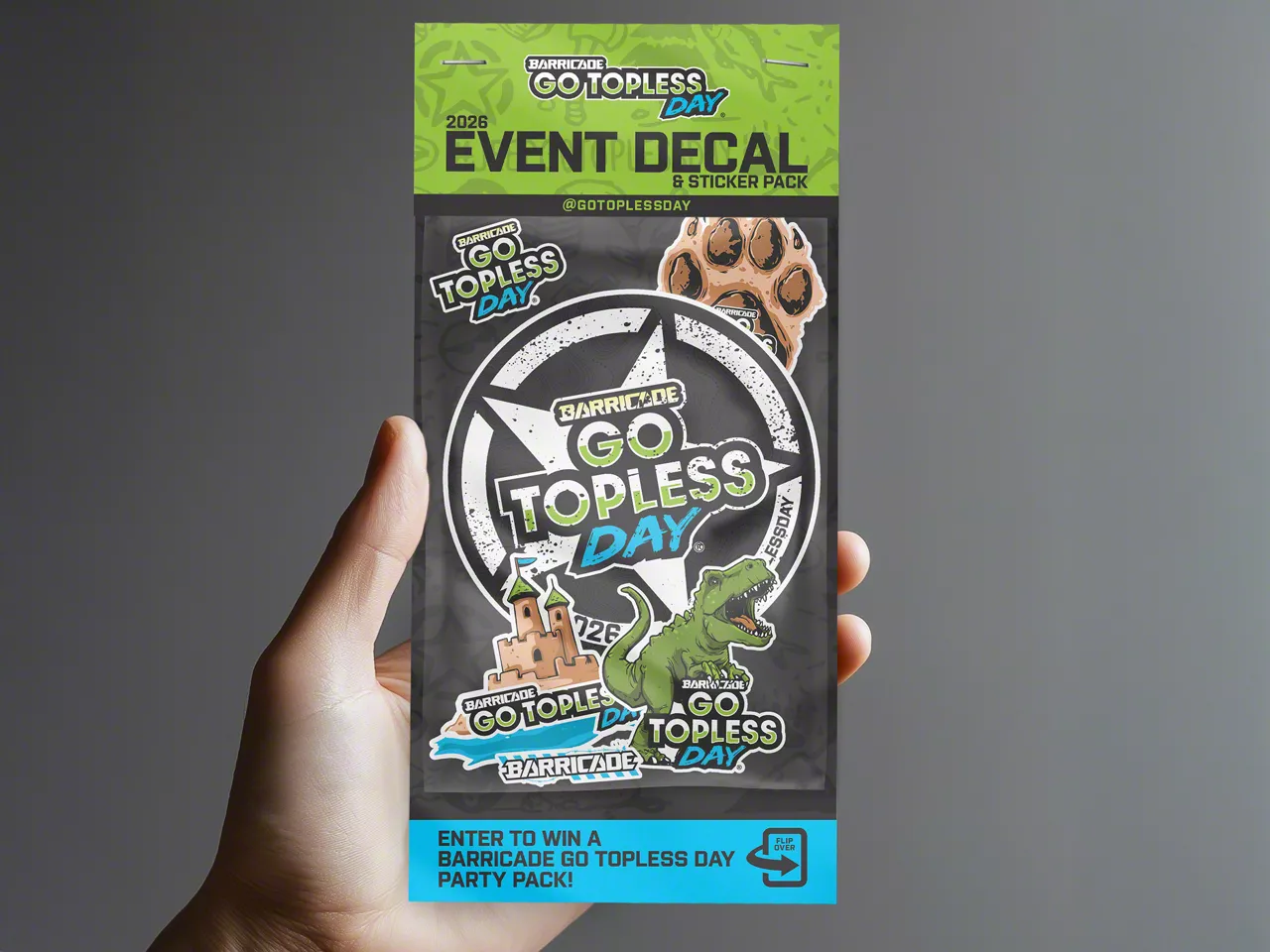 Celebrate GTD. A Go Topless Day 2026 Sticker Pack is a fun way to celebrate the day. This pack includes the 2026 Event Sticker and other Barricade/Go Topless Day branded stickers.