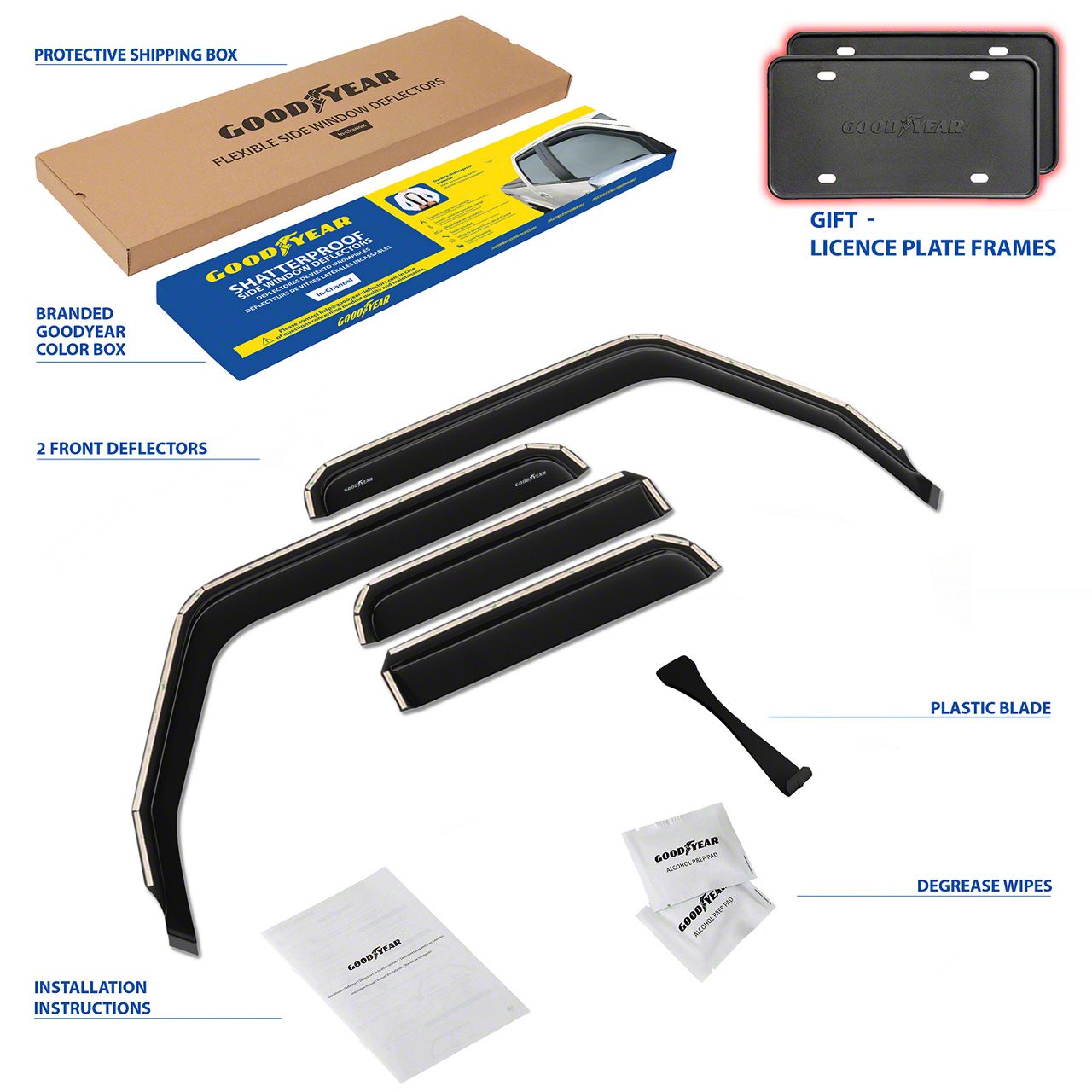 Application. The Goodyear Car Accessories Shatterproof in-Channel Window Deflectors fits 2020-2026 Jeep Gladiator JT models.