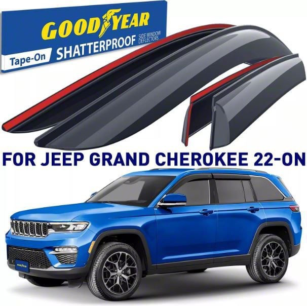 Application. This Goodyear Car Accessories Window Deflectors fits 2022-2025 Jeep Grand Cherokee WL Models. They enhance your vehicle’s weather protection and driving comfort while offering a clean, factory-style look that blends seamlessly with your exterior design.