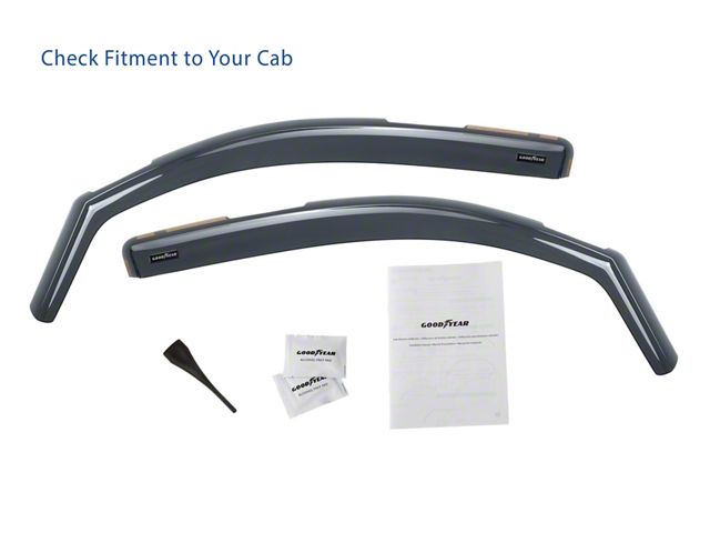 Keep the Elements Out. Keep the elements out with the Goodyear Shatterproof In-Channel Window Deflectors. These window deflectors affix to the top of your windows, constructed using shatterproof polycarbonate to keep your interior protected from rain, snow, and other elements.