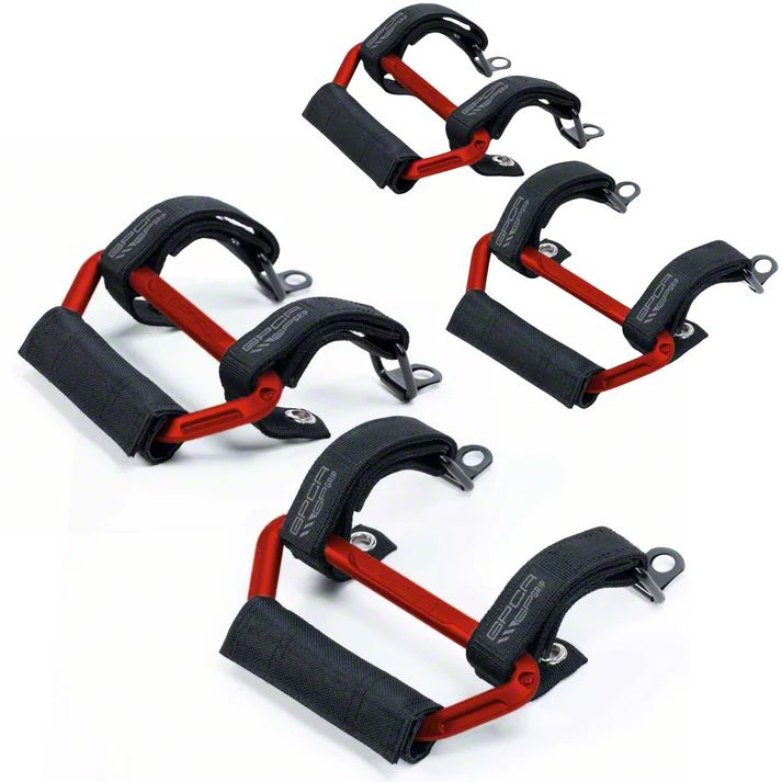 Durable, Adjustable, and Designed for Rugged Use. Made from high-strength nylon straps with aircraft-grade aluminum buckles, these handles offer maximum durability and security. The bright red color adds a bold, custom touch to the interior while ensuring visibility. Designed for factory roll bars, they install without modifications, making them a practical and stylish upgrade.