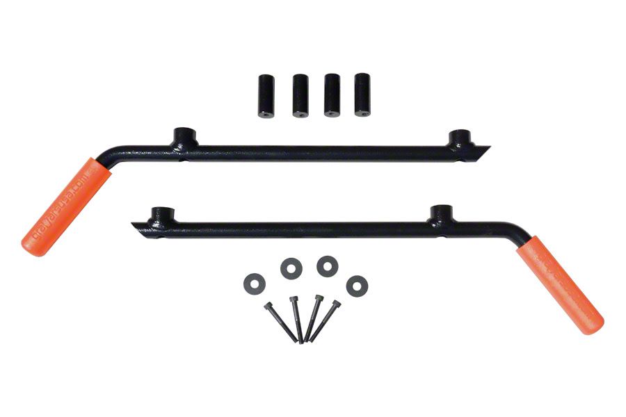 Sturdy Support. Equip your Gladiator with durable handles for support, especially when on bumpy off-road rides. These GraBars Genuine Solid Steel Front Grab Handles with Orange Grips will give you and your passengers comfortable support for stability and regaining balance when the going gets rough. These grab bars also serve as sturdy handles that facilitate easier getting in and out of your truck.