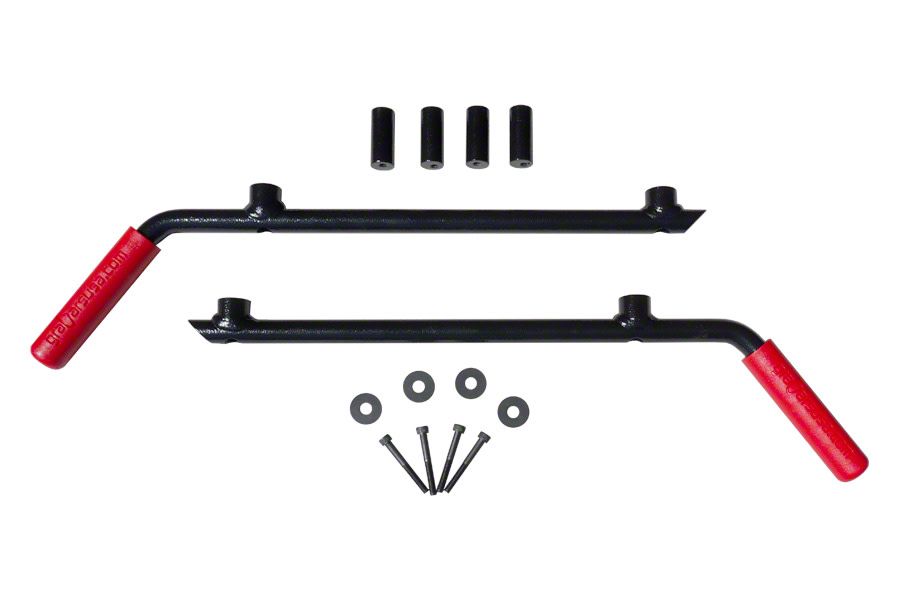 Application. These GraBars Genuine Solid Steel Front Grab Handles with Red Grips are intended for use on all 2020 to 2025 Jeep Gladiator JT models.
