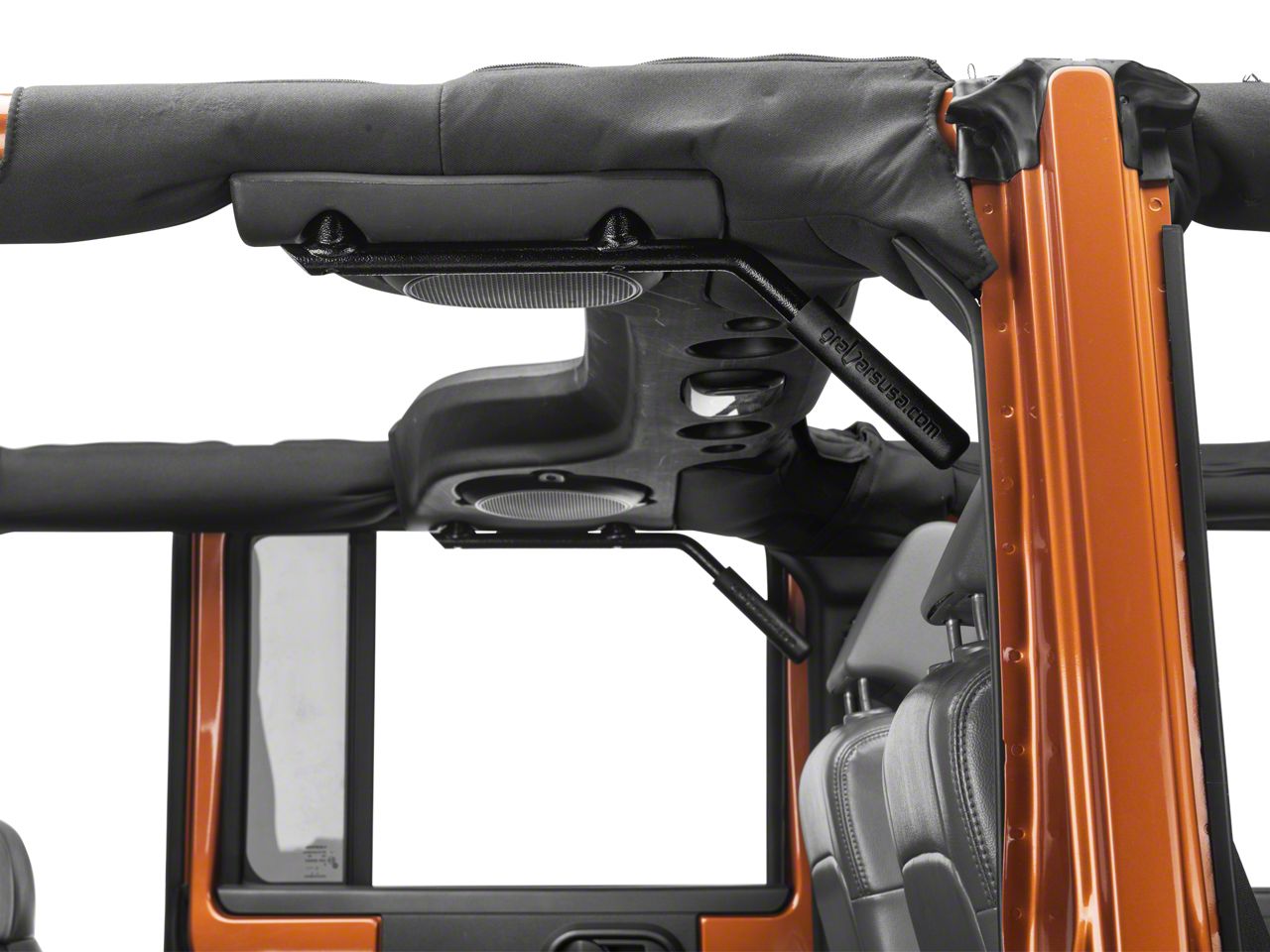 Grab with Style. The Grabars Rear Grab Handles w/ Black Grips injects your Wrangler with personality. These steel handlebars allow you to enter and exit your rear Wrangler seating in style.