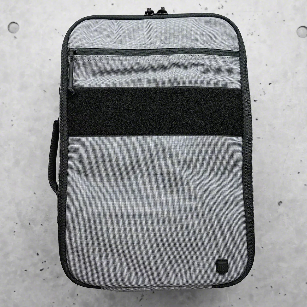 Rigid Molle Panel Backpack. Made for a universal fit, this Grey Man Tactical Stealth RMP Backpack comes in a matte grey finish. Built with a 10.75 by 17 inch main compartment and a 15.25 by 11 inch concealed compartment, this backpack is supported by a rigid Molle panel for durability and easily organizes your gear while letting you blend in with its “Grey Man” design.