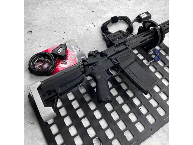 Installation. Putting this Locking Rifle Rack MOLLE Panel on your ride is easy and requires no drilling.