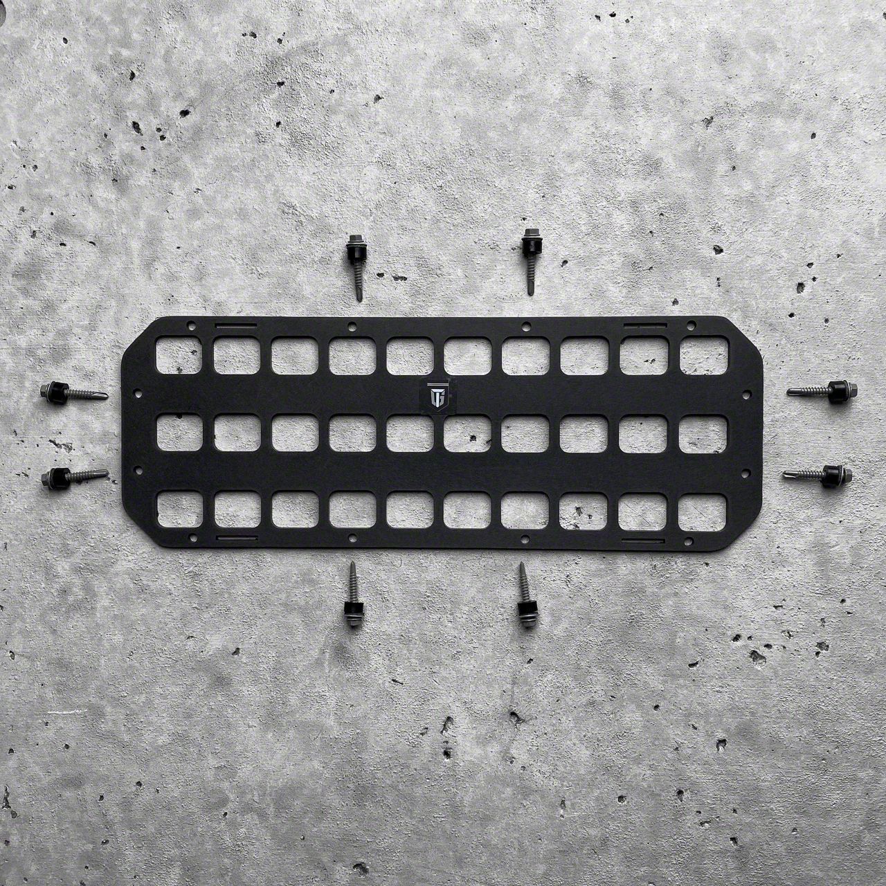 Application. The Grey Man Tactical RMP Console/Door/Dash MOLLE Panel with Self Drilling Screws and Nylon Spacers offers universal fitment.