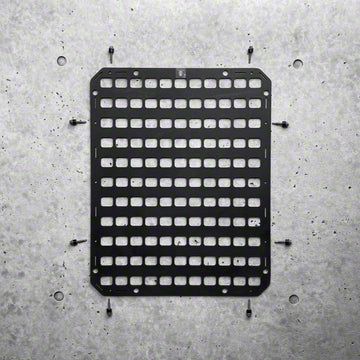 Modular Organizer. Made for a universal fit, this Grey Man Tactical RMP Safe MOLLE Panel comes in a matte black finish. Built to a 18.25 by 23 inch size, this Molle panel has a customizable adhesive backed loop for Velcro hook pouches and is designed to be both modular and easily swappable for a comprehensive and easy to use organizer. This panel includes self drilling screws and nylon spacers.
