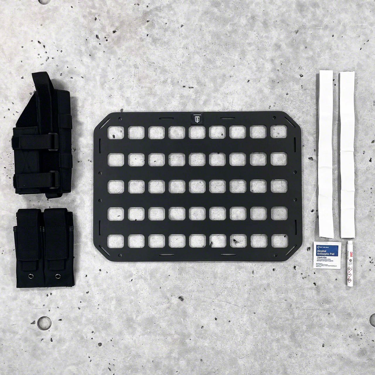Our #401 package includes a universal pistol holster and two pistol magazine pouches for easy access to your essentials. The adhesive-backed hook and loop strips provide simple installation into virtually any and every backpack. Manufactured in the United States, the patented Rigid MOLLE Panel [RMP] is the best insert to create the most reliable concealed carry backpack or bag.