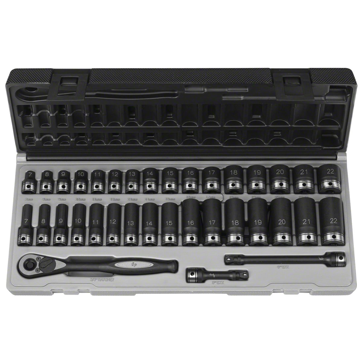 Grey Pneumatic 3/8-Inch Drive Standard and Deep Length Metric Duo-Socket Set; 6-Point; 27-Piece