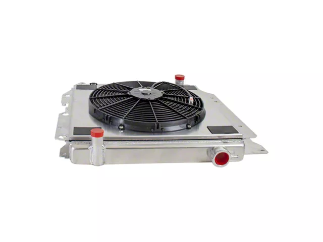 Construction and Appearance. Crafted from high-quality aluminum, this radiator is both durable and lightweight. It includes a hand-formed aluminum fan shroud, enhancing airflow and ensuring effective cooling. The electric fan is integrated into the design for superior temperature management. The unit features a 1.50-inch inlet and a 1.75-inch outlet for optimal fluid flow.