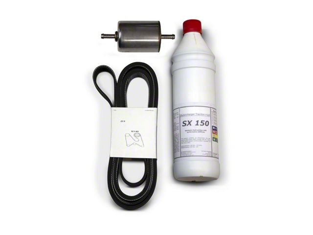 Complete Maintenance Kit. Designed for total supercharger maintenance, this kit includes 1 bottle of supercharger traction fluid, a new filter, and a serpentine belt. Their application is quick and easy but may require the help of a professional for the best results.
